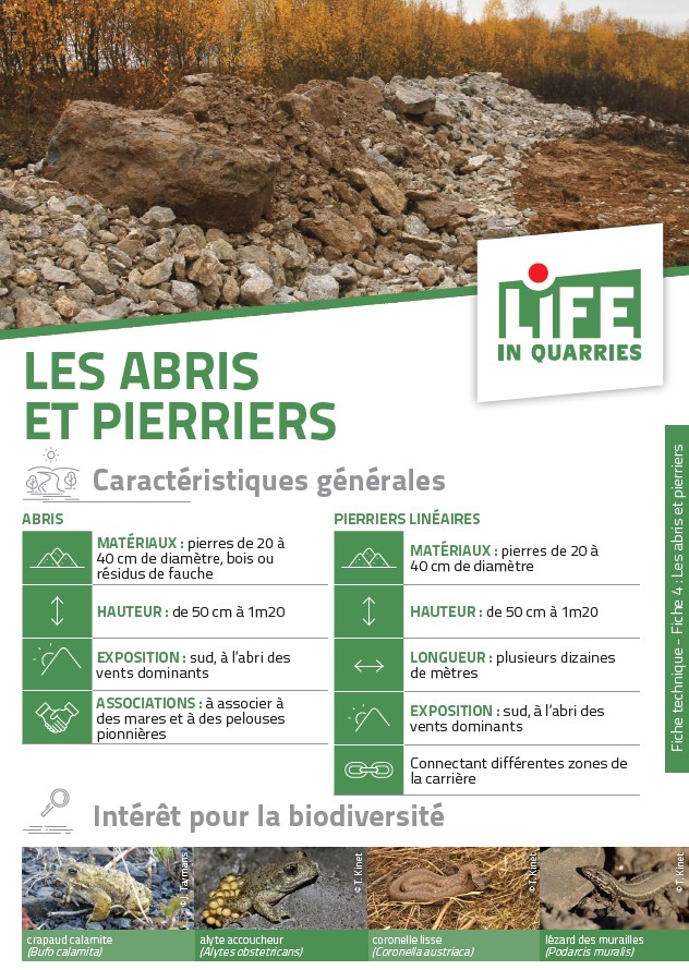 L’objectif du projet LIFE in Quarries était de développer des méthodes valides et testées permettant d’optimaliser le potentiel d’accueil de la biodiversité de plusieurs sites extractifs en activité en Belgique. L’aspect novateur de ce projet repose sur la mise en œuvre de mesures tant temporaires que permanentes de gestion de la biodiversité.